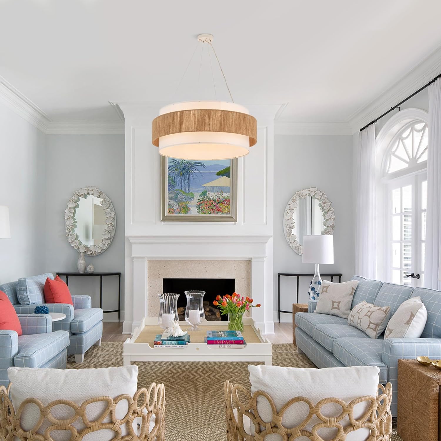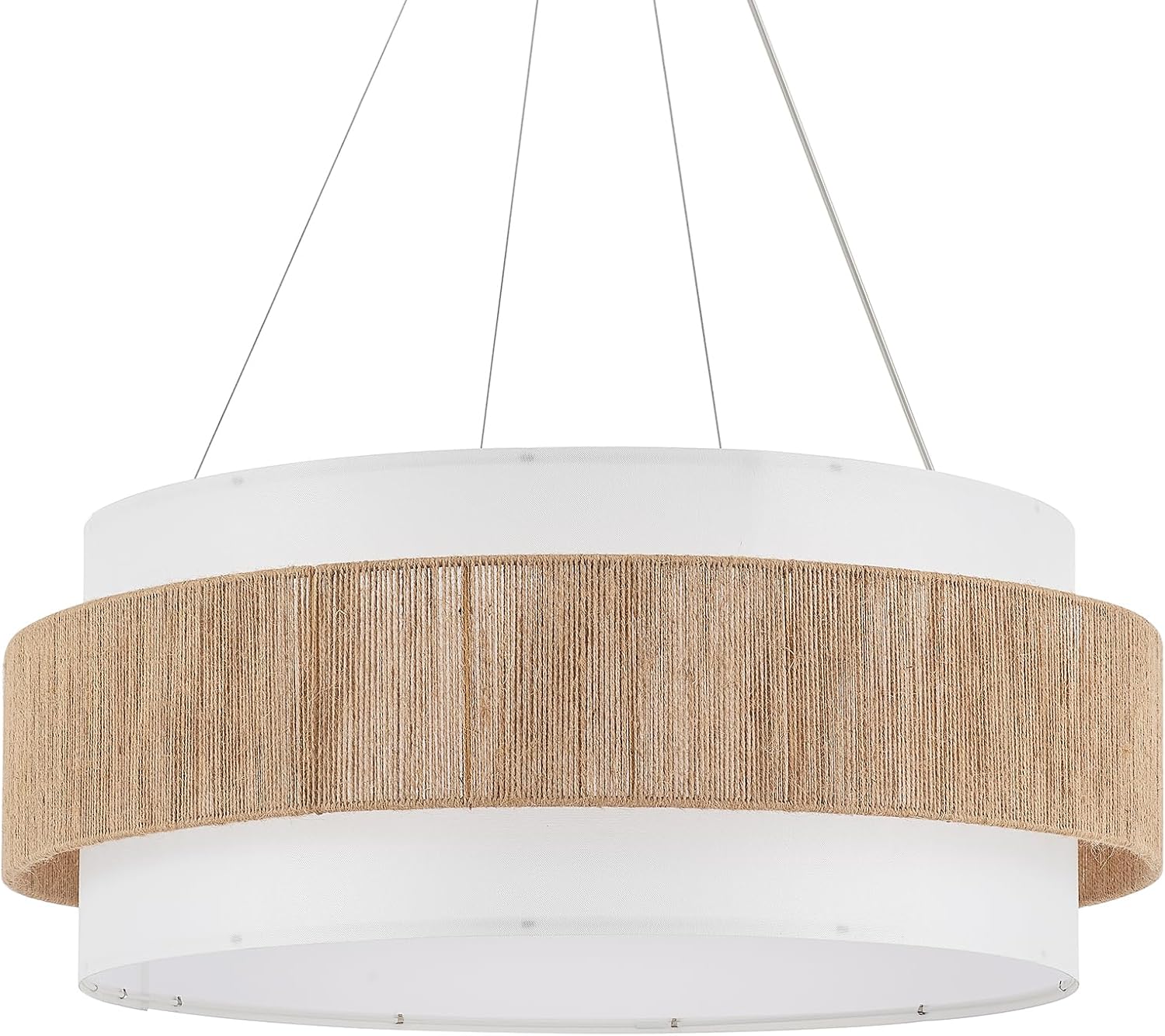 - Charming Bohemian Design and Ambient Glow:This semi-flush mount ceiling light features a beautifully crafted double-layer, two-tone drum silhouette, meticulously made of metal and hand-woven natural hemp rope paired with a fabric inner lining. Exquisite craftsmanship artfully blends Bohemian flair with rustic farmhouse charm. When illuminated, soft, warm light filters through the woven texture, casting captivating and tranquil light-and-shadow patterns on walls and ceilings. The effect enhances the ambience of the space, adds an artistic touch, and creates a cozy, restful retreat.