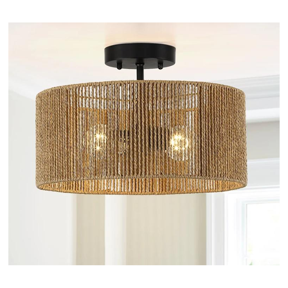 - BOHEMIAN INDUSTRIAL DESIGN: This rattan close to ceiling light is made of hand-woven natural rattan wrapped in a metal cage which is made of black iron. Paired with a hand-woven rope shade, the overall design brings a rustic and at the same time unique and elegant style will bring a modern bohemian flavor to your room.