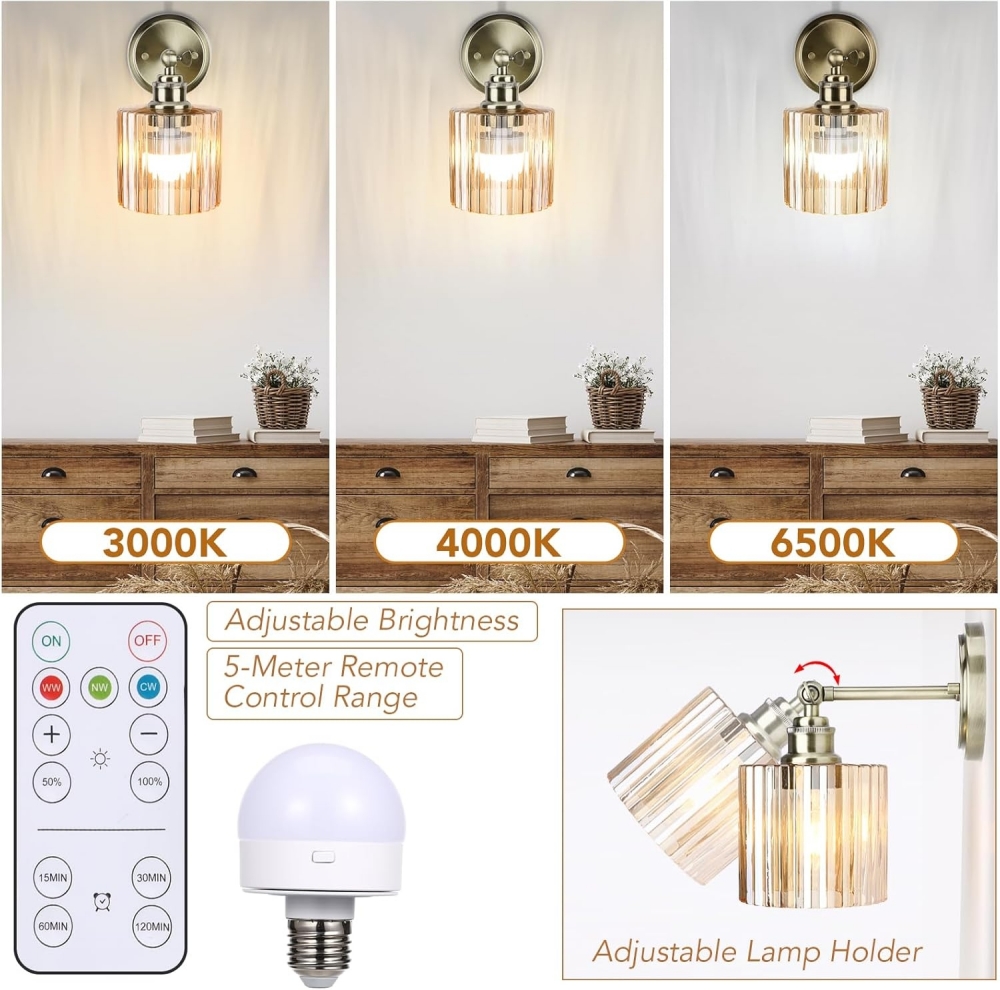 - 【Brass Frame】The bracket is made of carefully treated brass with a smooth metallic finish. In addition to the on-off switch, the stand can be adjusted up and down 180°, which means you can adjust the angle of the sconce as needed so that the light hits the ideal position. The wire is wrapped in a rubber coating with fabric covering for safety and reliability.
