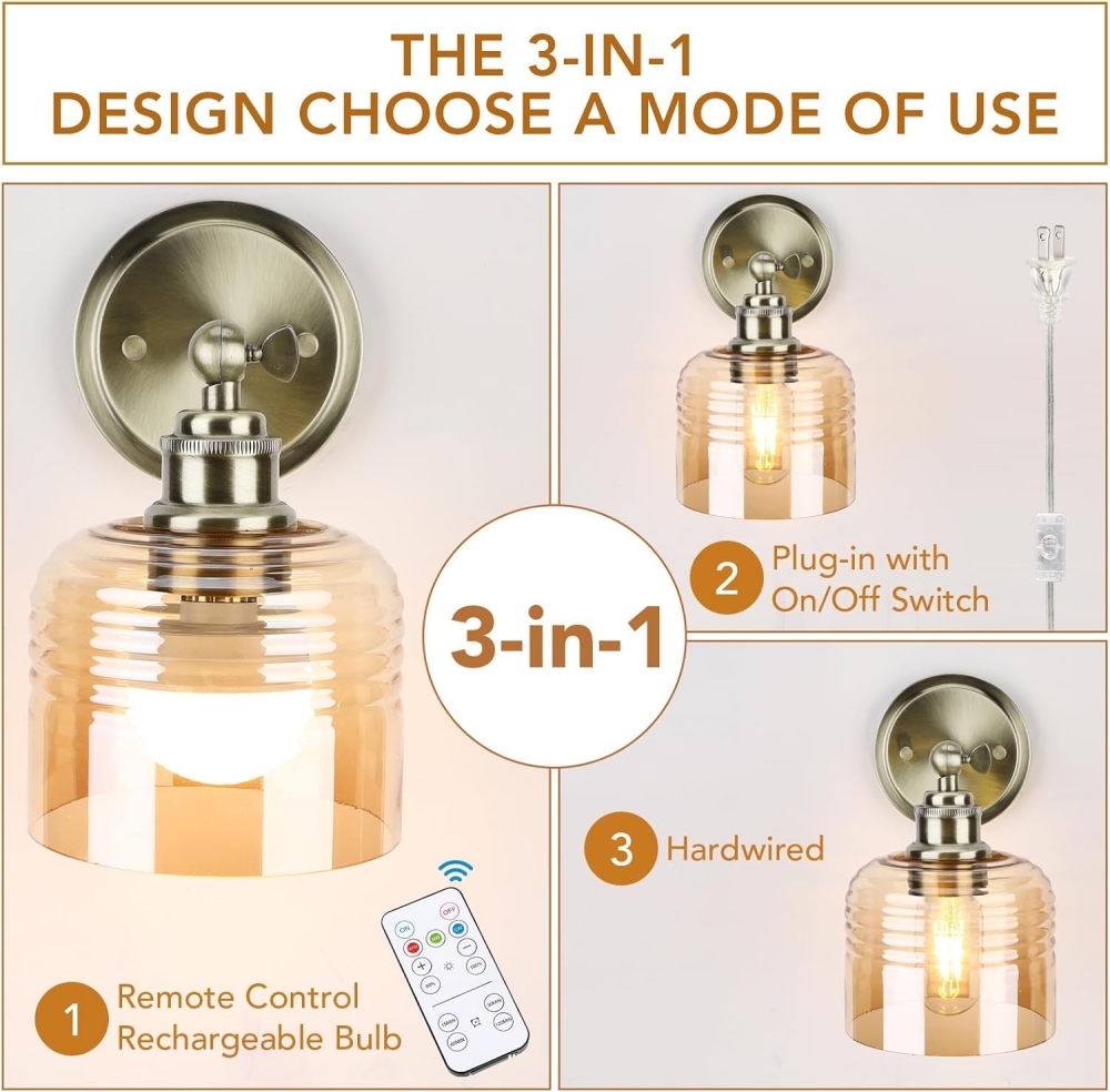 - 【Amber Tone】This is the most striking feature of the wall lamp. The glass texture is clear and can penetrate the light well, and the amber glass not only gives the luminaire a warm and deep luster, but also softens the light and creates a comfortable and emotional atmosphere.