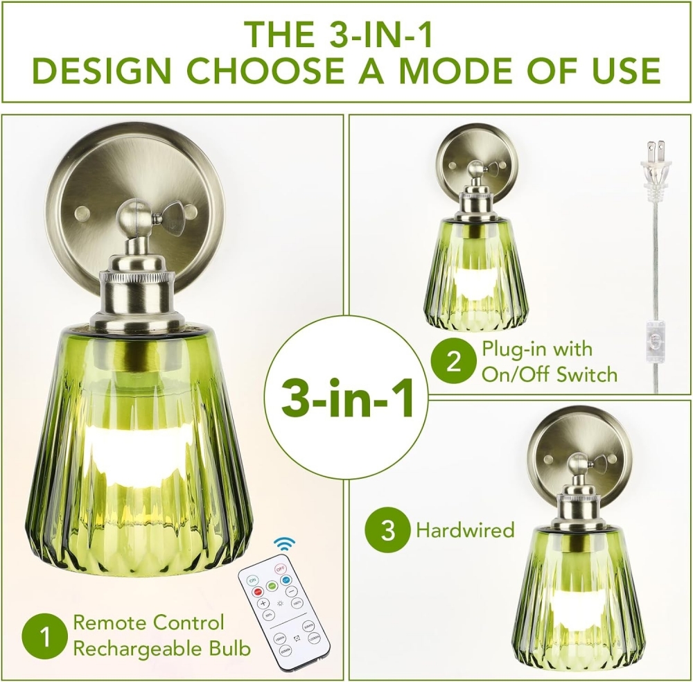 - 【Vintage Style & Stripe Glass Lampshade】This green wall sconce lampshade designed like tulip, create elegance and beauty atmosphere when turn the wall sconce on. This wall lamp is made of premium green glass, creates a vantage atmosphere, suitable for decorating your house.