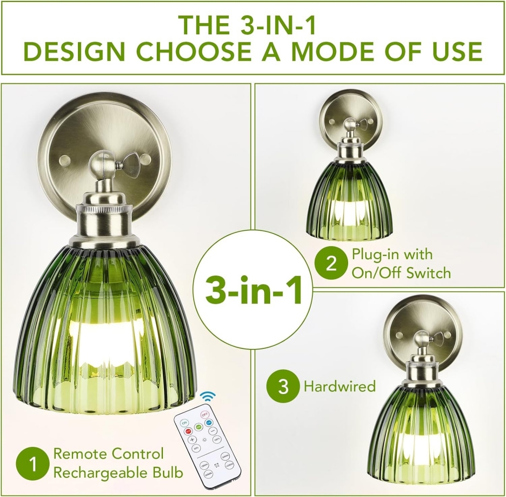 - 【Vintage Style & Stripe Glass Lampshade】This green wall sconce lampshade designed like tulip, create elegance and beauty atmosphere when turn the wall sconce on. This wall lamp is made of premium green glass, creates a vantage atmosphere, suitable for decorating your house.