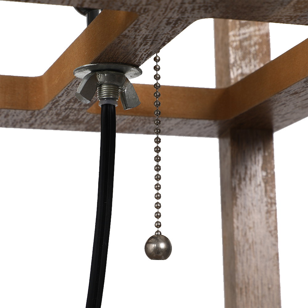 • ACCESSIBLE SWITCH: An easily accessible pull chain switch is located on the socket portion of the lamp to allow a quick and easy on/off function as needed. Lamp is also equipped with a 10.5 foot black plug in cord.
