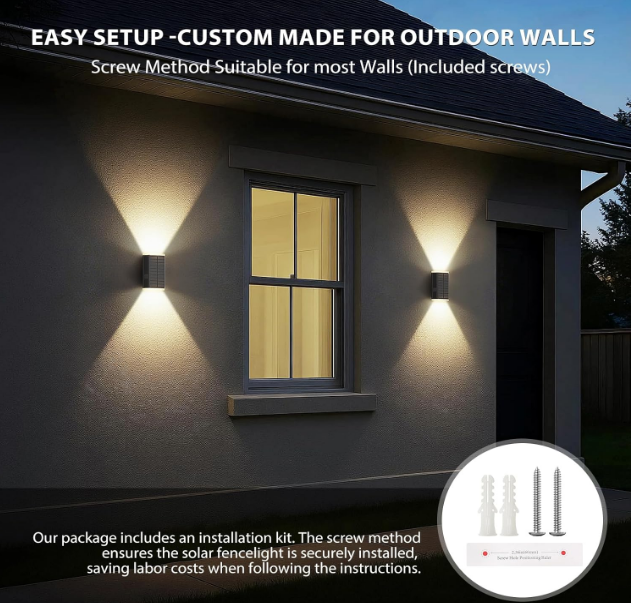 - 3 Lighting Modes Solar Wall Lights 】This solar outdoor lights uses up & down lighting design and provides 3 lighting modes: Warm white,Neutral white and Cool white mode. The multi-mode design can meet various daily lighting needs. The spotlight bead setting not only improves the visibility of the outdoor space, but also has a beautiful appearance.