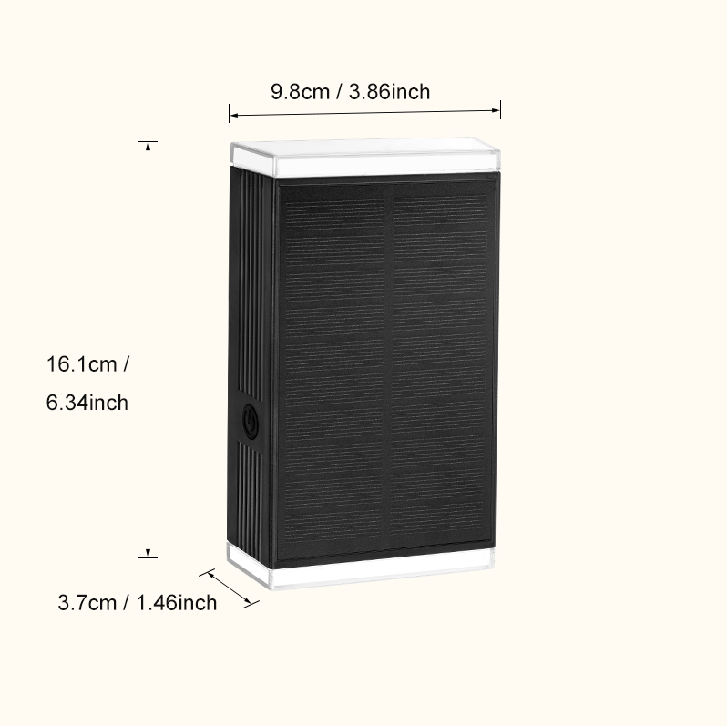 - 【Long Working Hours】The dimensions of this solar wall light are: 6.33″ x 1.41″ x 3.85″ , perfect for mounting on your wall.The large-capacity 1800mAh battery and high-conversion rate solar panel enable it to work longer when fully charged. After being fully charged in the sun, it can provide 12 hours of stable lighting, easily meeting the lighting needs throughout the night.