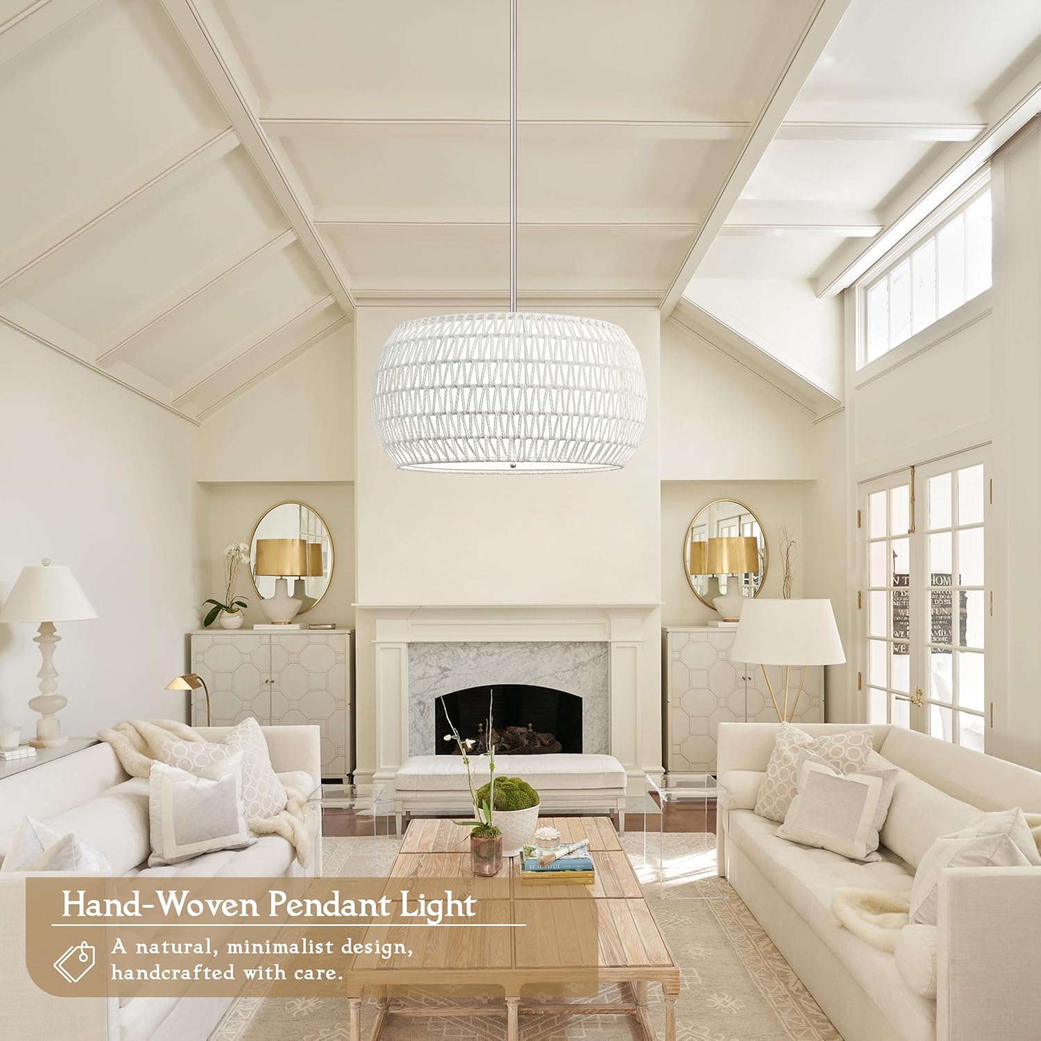 - 【Wide Application】: This hand-woven double-shade pendant light is not only a practical lighting fixture, but also an elegant decorative piece. Its exquisite design makes it suitable for bedrooms, kitchens, dining rooms, living rooms, lofts, farmhouses, and more.