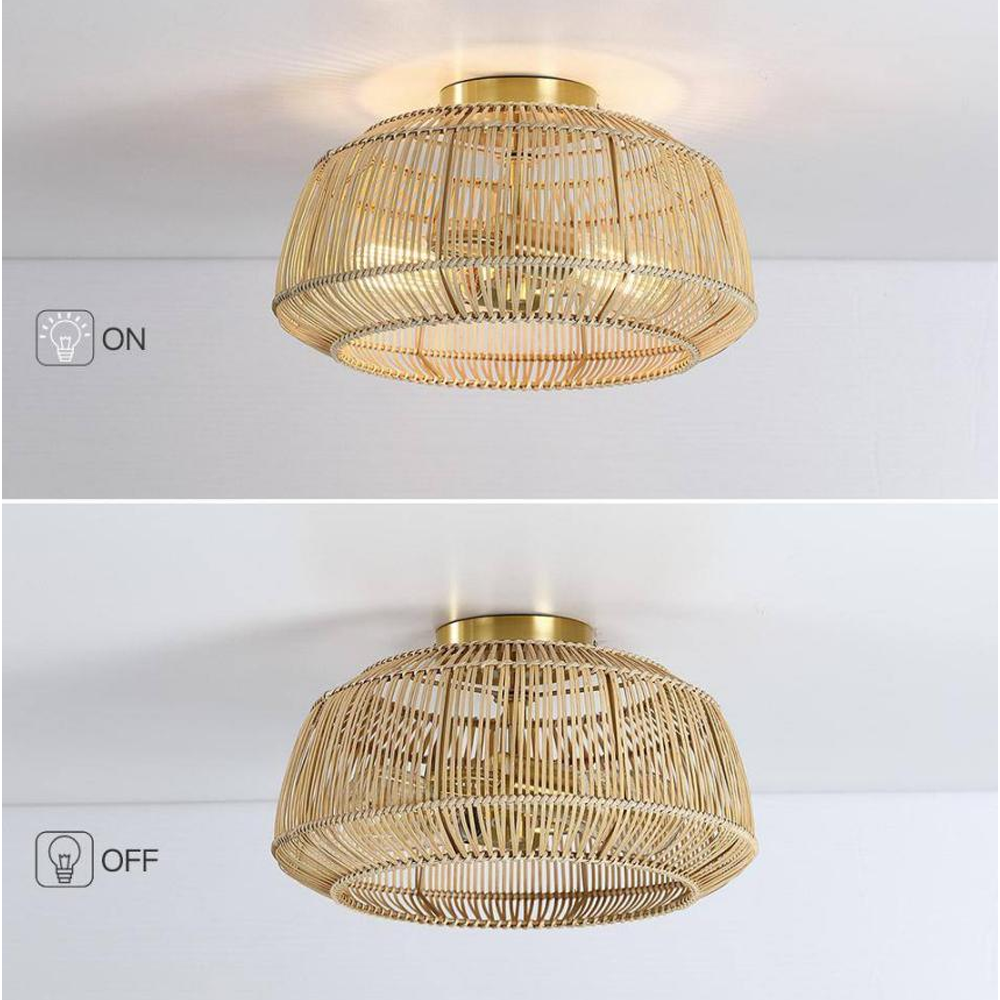 - Superior Air Circulation and Efficiency:The boho caged flush mount ceiling fan features 7 ABS blades hidden within a cage-like shade, ensuring powerful and efficient air circulation that often outperforms regular boho ceiling fans. This hidden enclosed rattan flush mount ceiling fan places particular emphasis on energy efficiency, equipped with a smooth copper motor and optimized blade design. In addition, it is equipped with a reverse mode for warm air circulation in the winter months