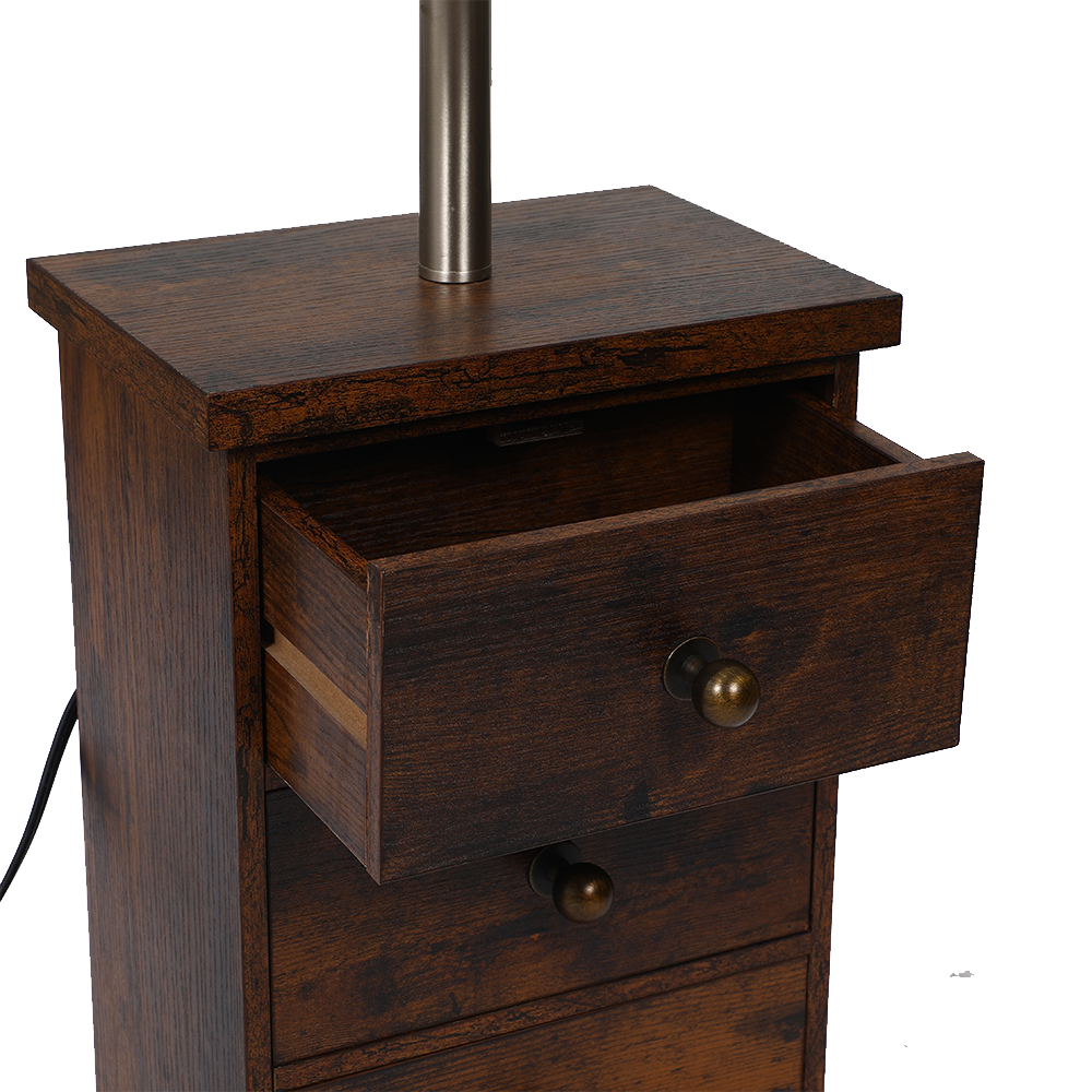 Rustic Wood Table Lamp with Storage Drawers and Linen Shade – Home Decor