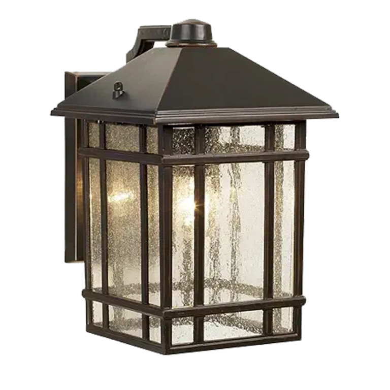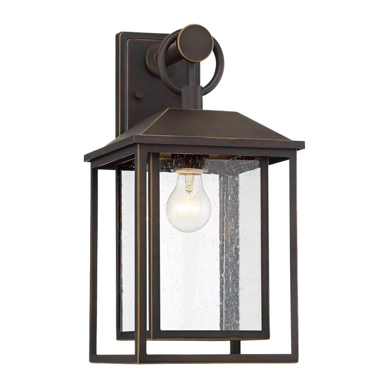Rustic Bronze Outdoor Wall Lantern with Seeded Glass Panels - Home Decor